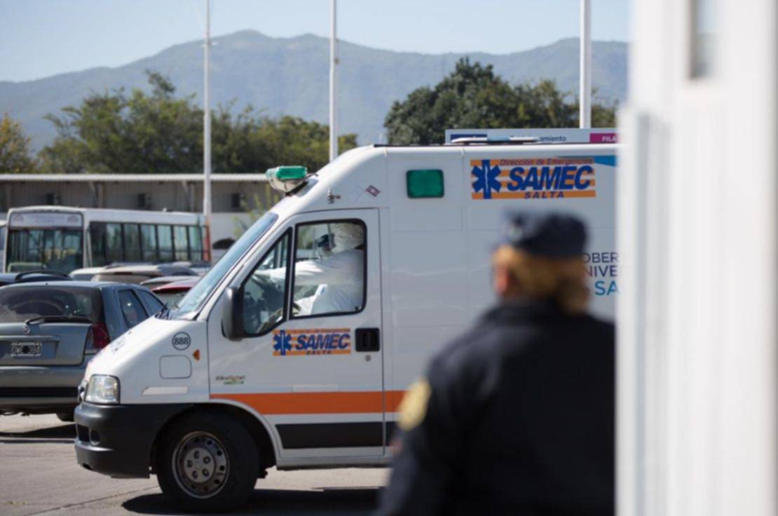 Minutos más tarde, arribó una ambulancia del SAMEC a la zona del estacionamiento del Centro Cívico. Personal médico, debidamente equipado con trajes de bioseguridad, procedió a trasladar al vecino.
