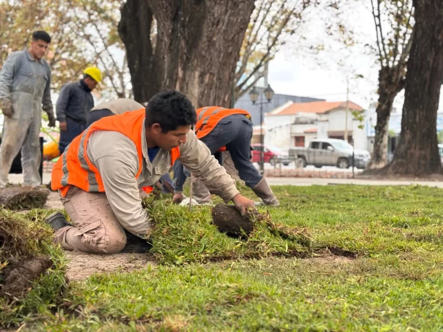 DANIEL SALMORAL.- La Municipalidad avanza con las obras de puesta en valor de la plaza Alvarado. Las tareas se realizan en el marco del plan de Recuperación de Espacios Verdes.