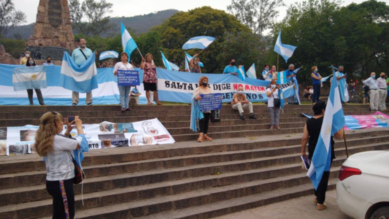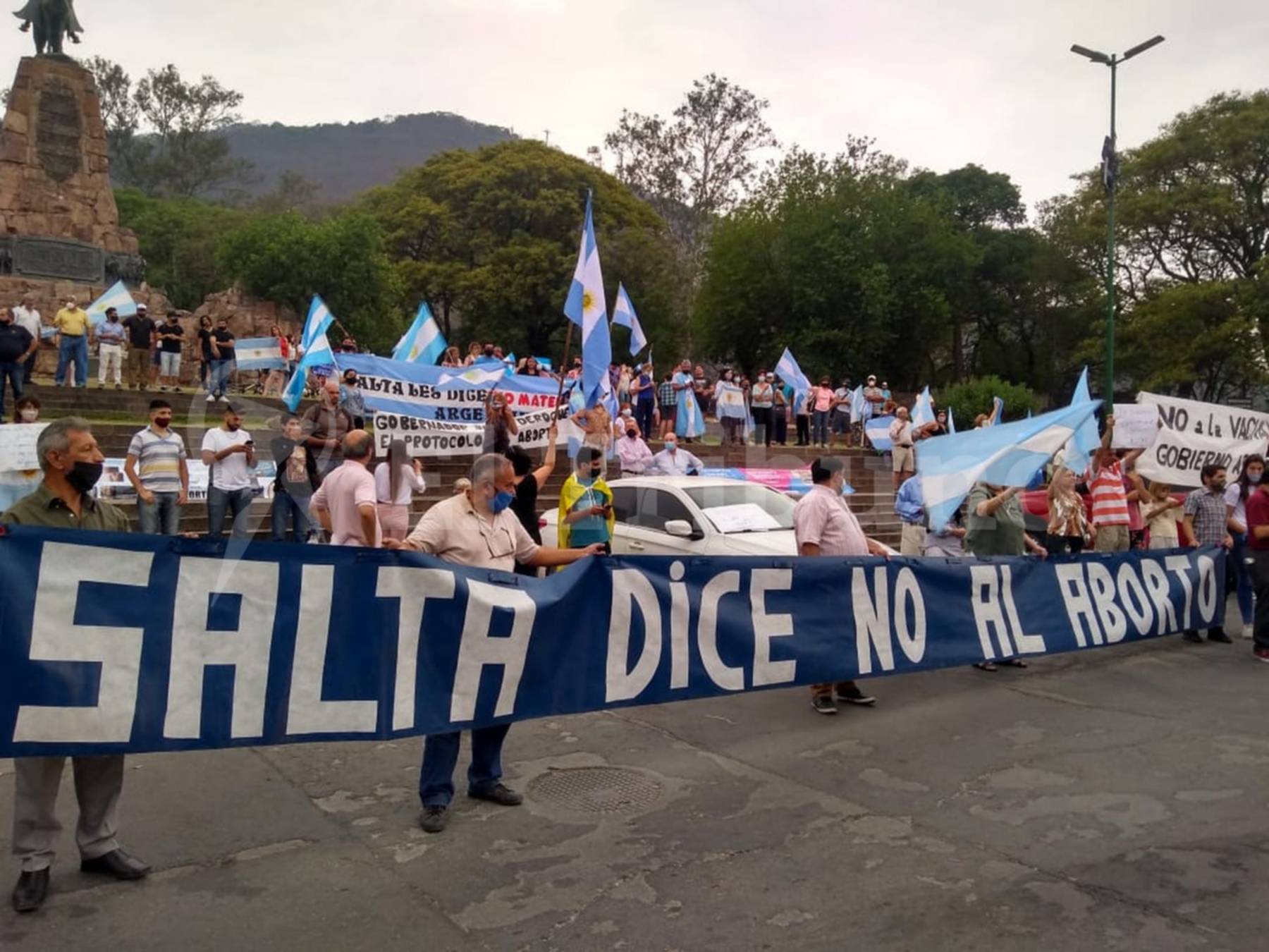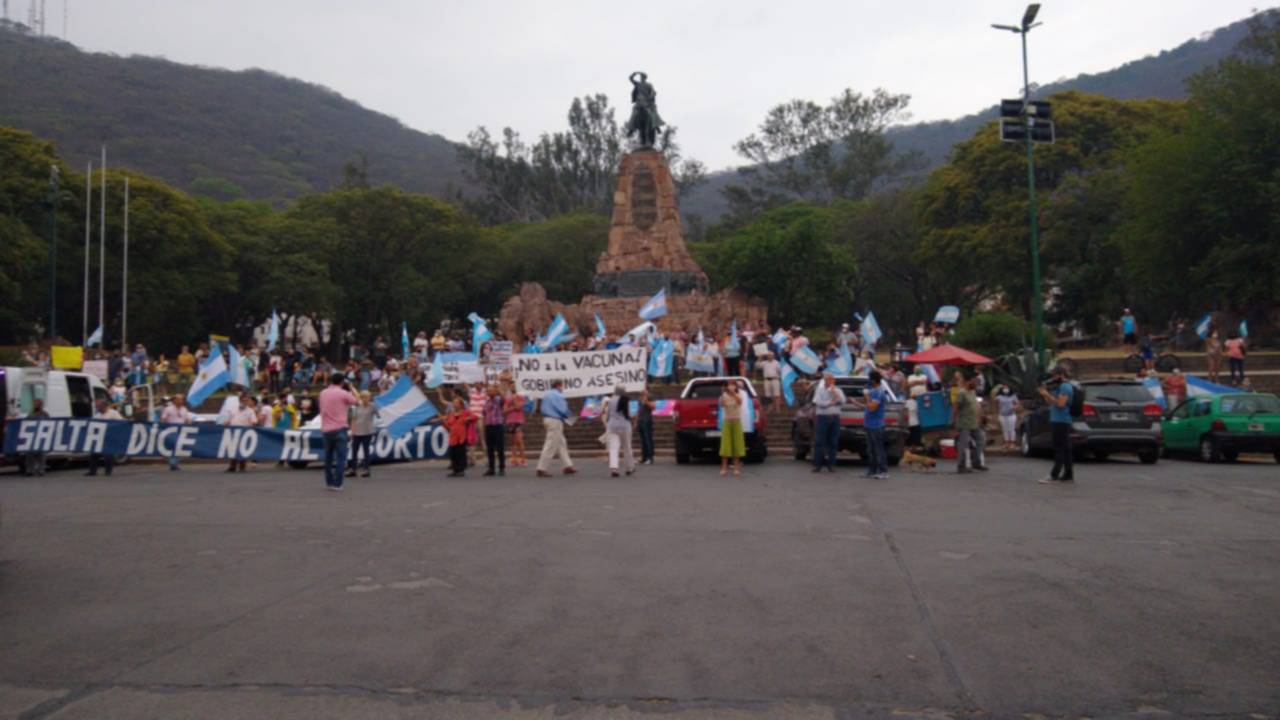 En Salta la concentración fue en el monumento a Güemes y tuvo como ejes el rechazo al aborto y a la vacuna contra el coronavirus.