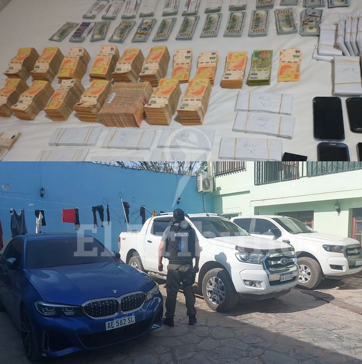También había armas y teléfonos celulares. Desde otras viviendas secuestraban, casi al mismo tiempo, más vehículos de alta gama y documentación de prueba.