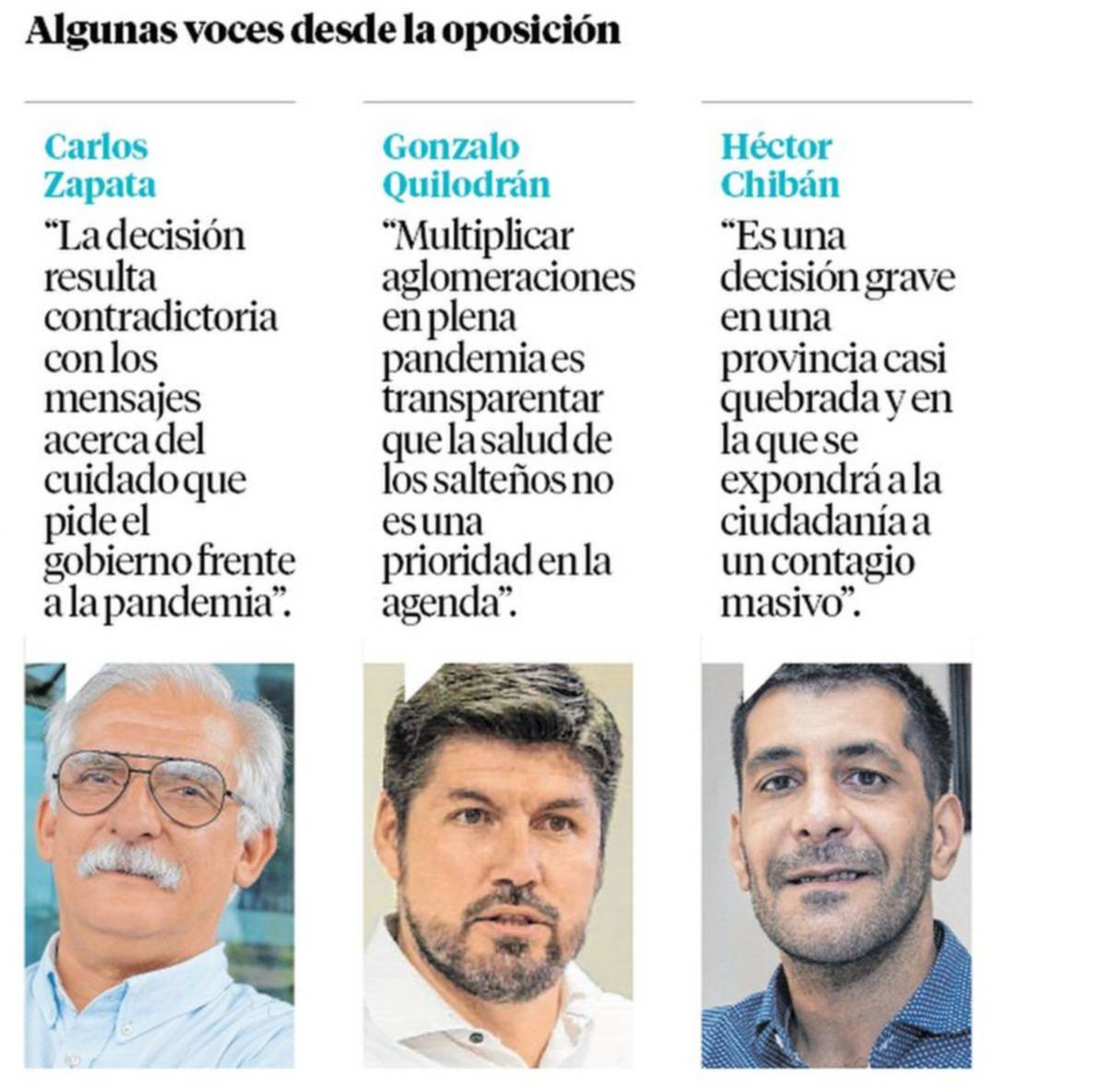 El referente de la bancada olmedista de la Cámara Baja dijo que la decisión del Ejecutivo provincial «resulta contradictoria con los mensajes acerca del cuidado que pide el Gobierno frente a la pandemia. Por un lado, se promulga una ley en la cual se fijan sanciones para los que incurran en conductas que pudieren contribuir a la expansión de los contagios, y, por el otro, solo por conveniencia circunstancial pondrán en riesgo la salud en un momento en que se espera un rebrote», advirtió Zapata.