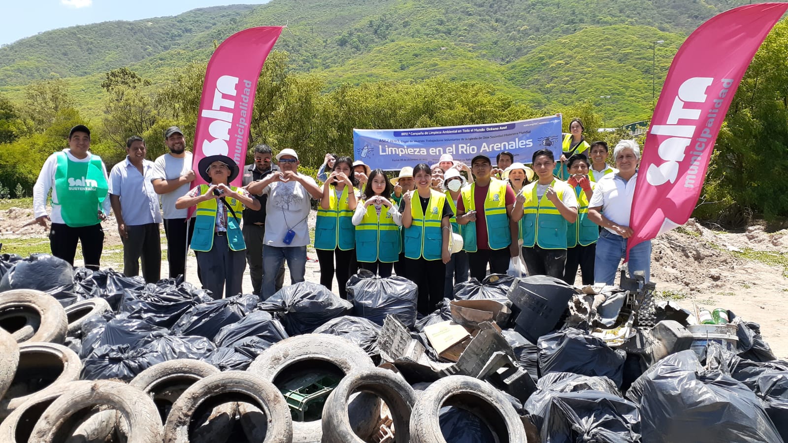 DANIEL SALMORAL.- En el marco del plan de saneamiento del río Arenales, la Municipalidad de Salta, junto a voluntarios de la Fundación Descubrir y a la Iglesia ASEZ WAO, llevó adelante trabajos de limpieza en la zona del Parque Industrial, en el bajo puente de acceso a barrio Solidaridad, con el objetivo de recuperar el lugar para descanso familiar y fomentar la conciencia ambiental.