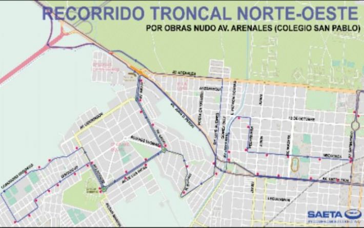 Av. Savio Av. Arenales – Pedernera – Necochea a recorrido habitual.