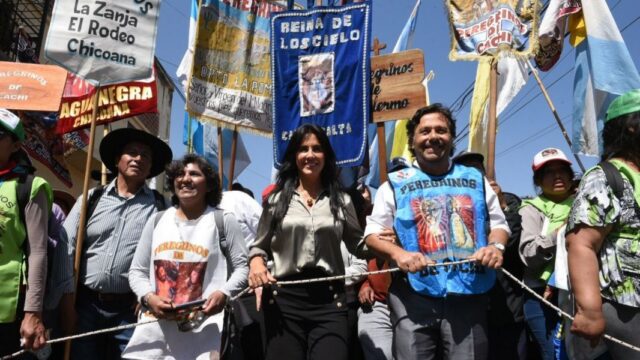 El Gobernador, acompañado de su esposa Elena Cornejo, reconoció a “nuestros peregrinos que marchan en una emocionante manifestación de fe y devoción a los Santos Patronos”.