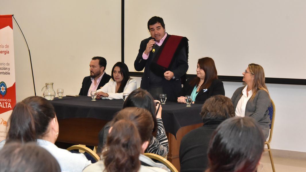 Luego de la rueda de negociaciones entre proveedores y mineras, desde la Secretaría de Minería y Energía, se brindó una capacitación a cargo del director general de Asuntos Legales y Técnicos Leonardo Gualpa.