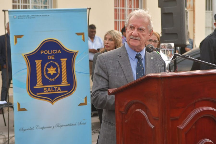 DANIEL SALMORAL.- El vicegobernador a cargo del Poder Ejecutivo, Antonio Marocco, encabezó el acto inaugural de la nueva Unidad Regional N°7 de la Policía provincial en el municipio de General Güemes.