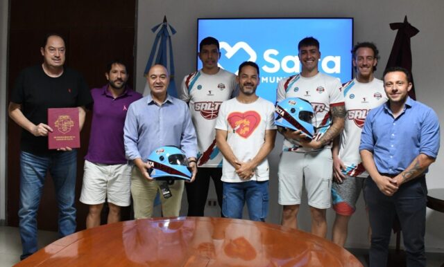 El intendente, Emiliano Durand, recibió en su despacho a Fernando Palópoli, presidente del club de básquet, Ricardo De Cecco, su director técnico y a tres jugadores del club, entre ellos Facundo Binda, el capitán. También estuvieron presentes el presidente de la Agencia Salta Deportes, Ezequiel Barraguirre y el secretario de Tránsito y Seguridad Vial, Matías Assennato.