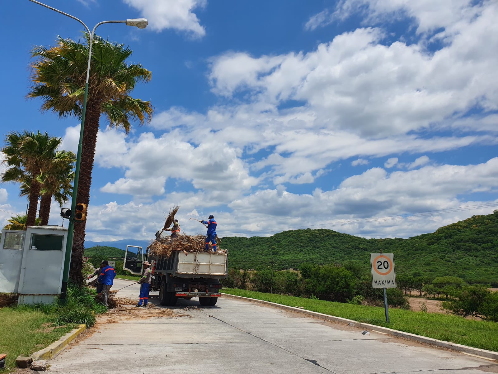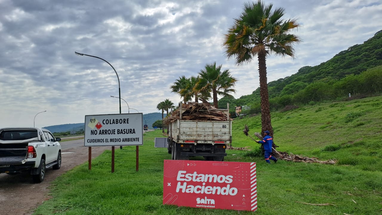 En la zona trabajan los equipos municipales, abocados a la poda en altura de más de 50 palmeras que hacía muchos años no se realizaba, logrando el despeje del paisaje y la presentación del lugar.