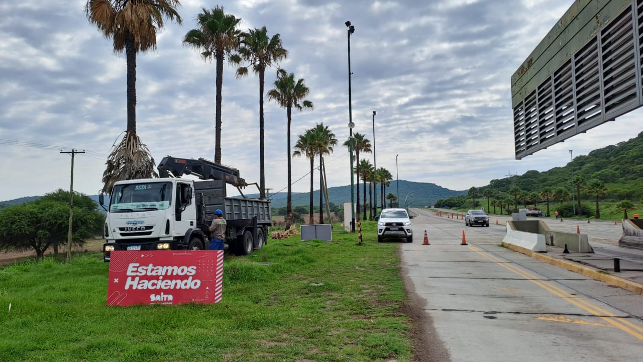 Los equipos abocados al proyecto paisajístico trabajan desde el ex peaje Aunor hasta la zona del Portezuelo. Se realiza poda en altura de más de 50 palmeras, se colocan macetas rotomoldeadas en la platabanda central y se efectúan tareas de pintura de los pórticos que sostienen la cartelería vial.