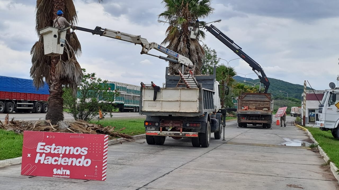 En la zona trabajan los equipos municipales, abocados a la poda en altura de más de 50 palmeras que hacía muchos años no se realizaba, logrando el despeje del paisaje y la presentación del lugar.