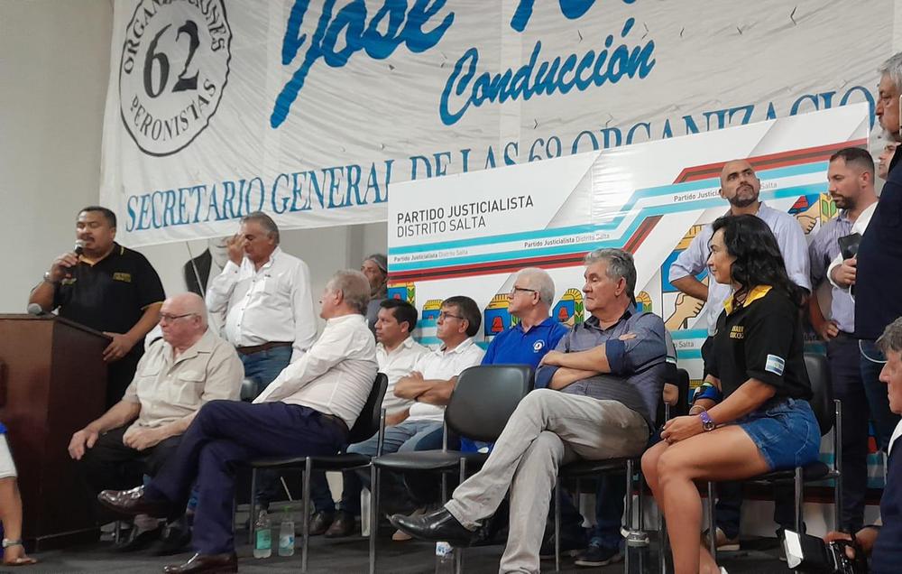 DANIEL SALMORAL.- Con la participación de los distintos gremios y de referentes de la CGT, seccional Salta, el secretario General de la Unión del Personal Civil de la Nación (UPCN), Gustavo Soto, volvió a asumir la conducción de las 62 Organizaciones Peronistas.