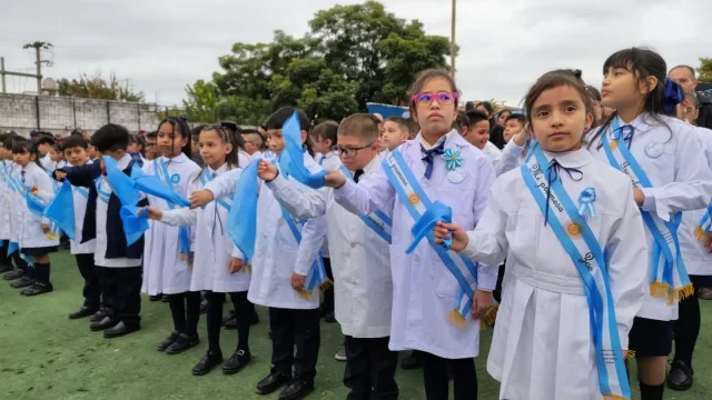 Durante el acto, los niños expresaron su compromiso con los valores democráticos, la participación y la convivencia, reafirmando principios como la libertad, la solidaridad y la igualdad. Al recitar la fórmula correspondiente, los estudiantes respondieron al unísono con un emotivo “¡Sí, prometo!”.