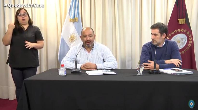 En primer lugar, el ministro se refirió a los pagos de sueldos. “El día de mañana cobra la gente del servicio de Seguridad, este jueves cobra Salud y el sábado cobra Educación, a este escenario se suma el pago a jubilados, seguro de desempleo y AUH”, inicio el funcionario quien pidió que “respetemos y cuidemos a los vecinos que tengan que salir a hacer filas, sabemos que tenemos que salir (a cobrar) y vamos a estar atentos cuidando a nuestro adultos mayores”.