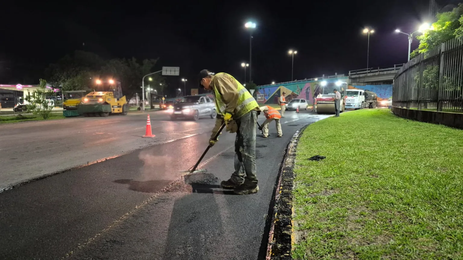 Debido al constante tránsito de vehículos por el lugar, los trabajos se van desarrollando por tramos y carriles, de noche para minimizar cortes y molestias.