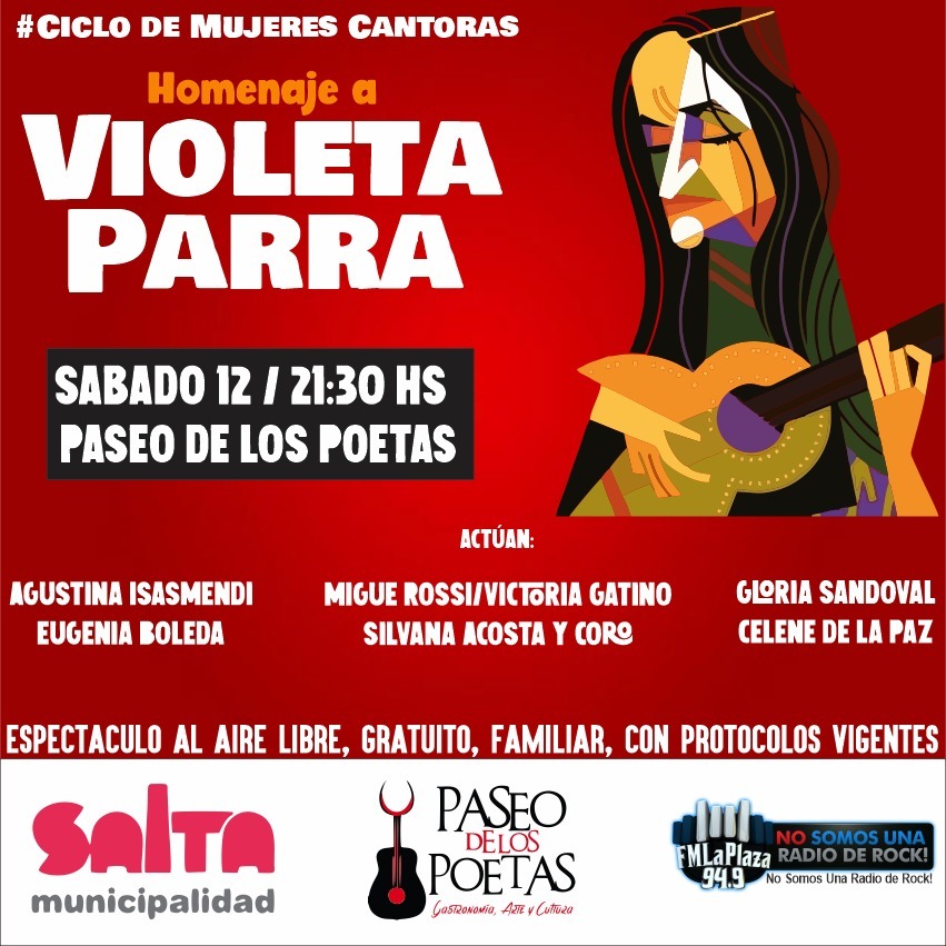 DANIEL SALMORAL.- Continuando con las actividades previstas para este año, organizadas en conjunto por la Secretaría de Cultura y Turismo de la Municipalidad y el Paseo de los Poetas, en el Mes de la Mujer se presenta el Ciclo de Mujeres Cantoras, con homenajes a grandes artistas latinoamericanas.