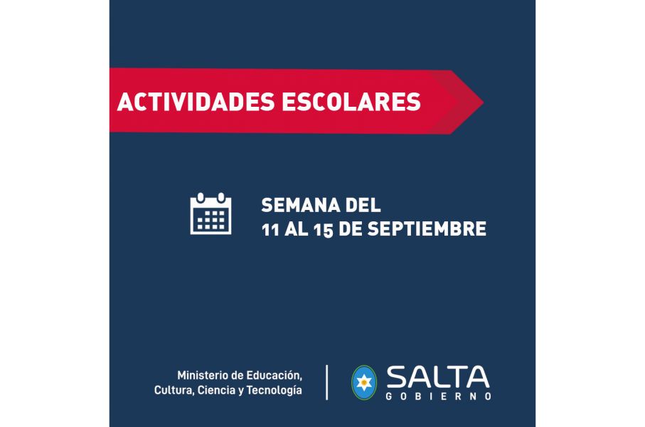 DANIEL SALMORAL.- El Ministerio de Educación, Cultura, Ciencia y Tecnología brindó detalles sobre los días sin actividades escolares comprendidos en la semana que inicia este lunes 11 al viernes 15 del corriente mes, oportunidad en que Salta conmemora la Fiesta del Señor y la Virgen del Milagro.