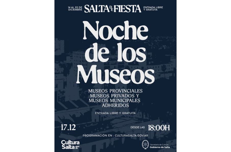 Este año no será la excepción, ya que los museos ofrecen una programación que invita al disfrute de la familia o de grupos de amigos, con: el anuncio y premiación de los ganadores del XVII Salón de Artes Visuales en el Museo de Bellas Artes, la inauguración de la muestra Premios Konex 2022 “Salteños con Diplomas al Mérito” en Explora Salta, un concierto de la Orquesta Infantil y Juvenil en el MAC, la presentación del Calendario 2022 en el MAAM, música en vivo en la terraza del Antropológico, un recital del Coro Polifónico de Salta en el Museo Histórico de la U.N.S.A, visitas guiadas especiales en el Complejo Cultural San Francisco, una feria de arte de pequeño formato en el Museo de la Ciudad Casa de Hernández, un desfile y concurso de cosplay en el Museo Quinquela Martín de Rosario de la Frontera, una peña en el Museo Histórico Finca Castañares, música en vivo en el Museo de la Vid y el Vino de Cafayate, degustación de productos regionales en el Museo Arqueológico de Cachi y muchísimas cosas más.