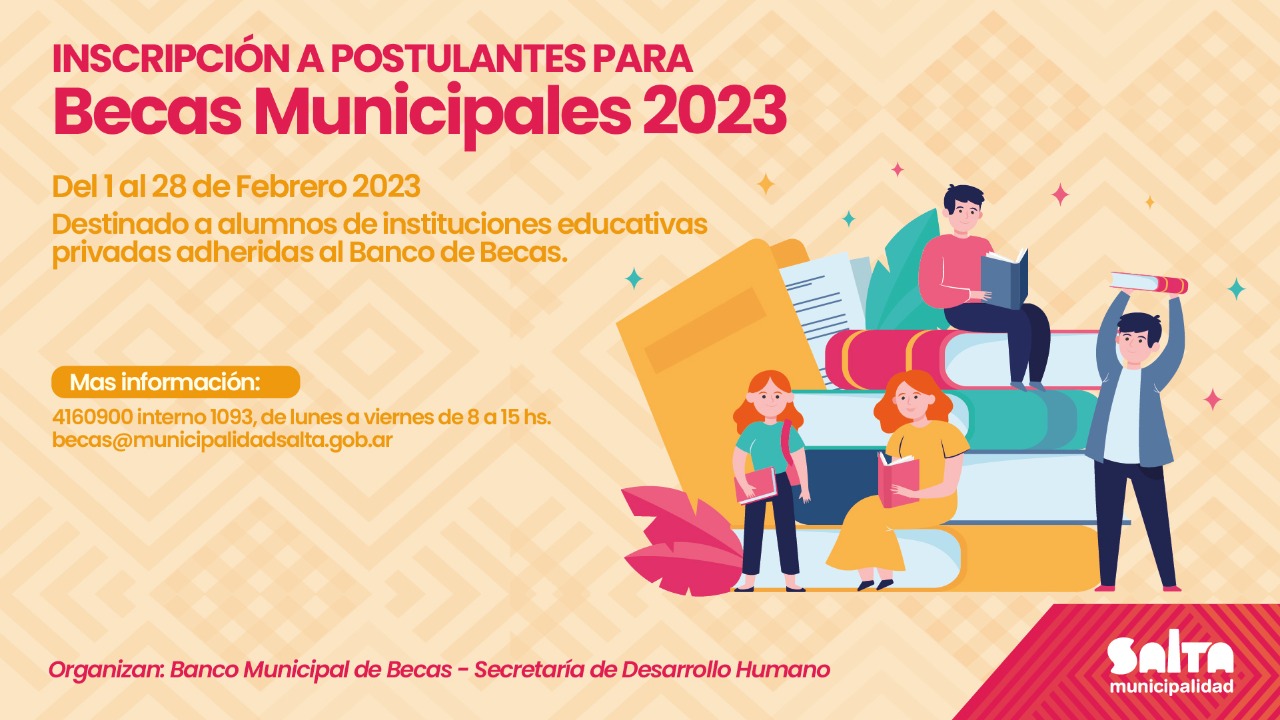 Los interesados podrán inscribirse ingresando al link: https://municipalidadsalta.gob.ar/becas-municipales/ La presentación de la documentación será únicamente de manera digital.
