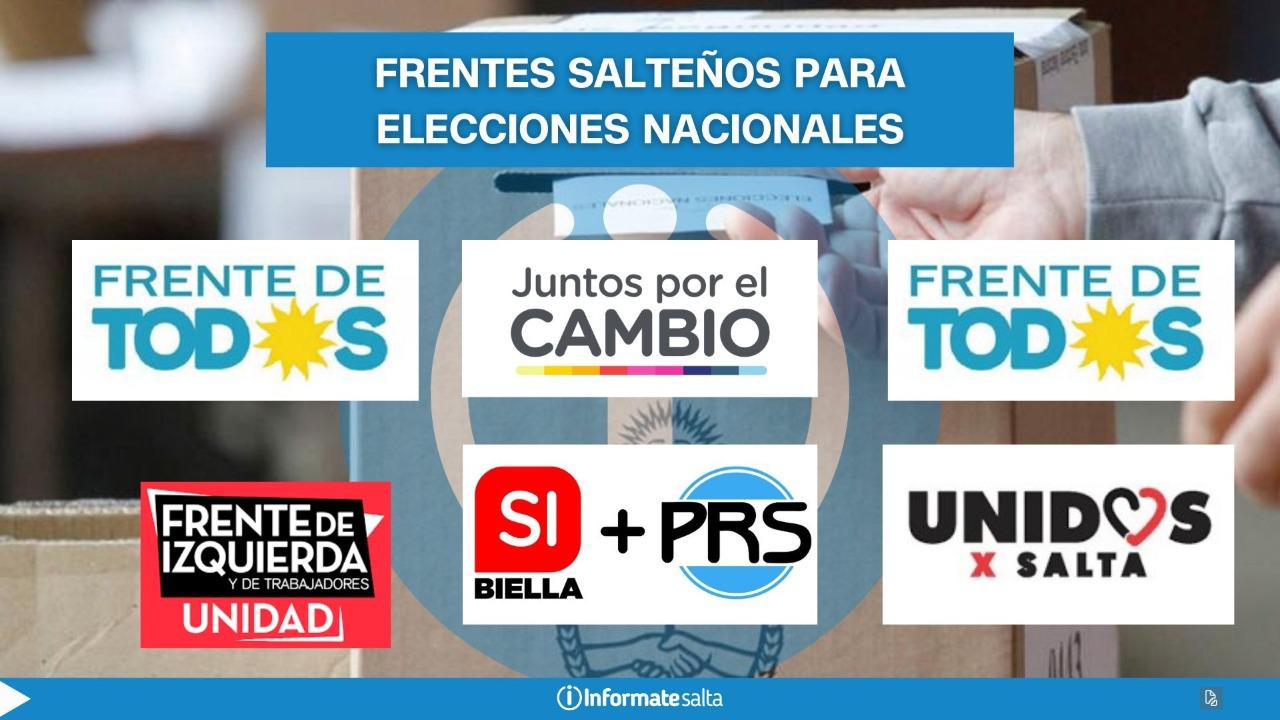 Por parte, el PRO Salta, la Unión Cívica Radical (UCR) y Ahora Patria finalmente llegaron a un acuerdo y reeditarán el mismo frente que se conformó para los comicios provinciales. El frente cuenta con la adhesión de la Coalición Cívica de Salta, Una Nueva Oportunidad, el Partido Liberal de Salta, entre otros.