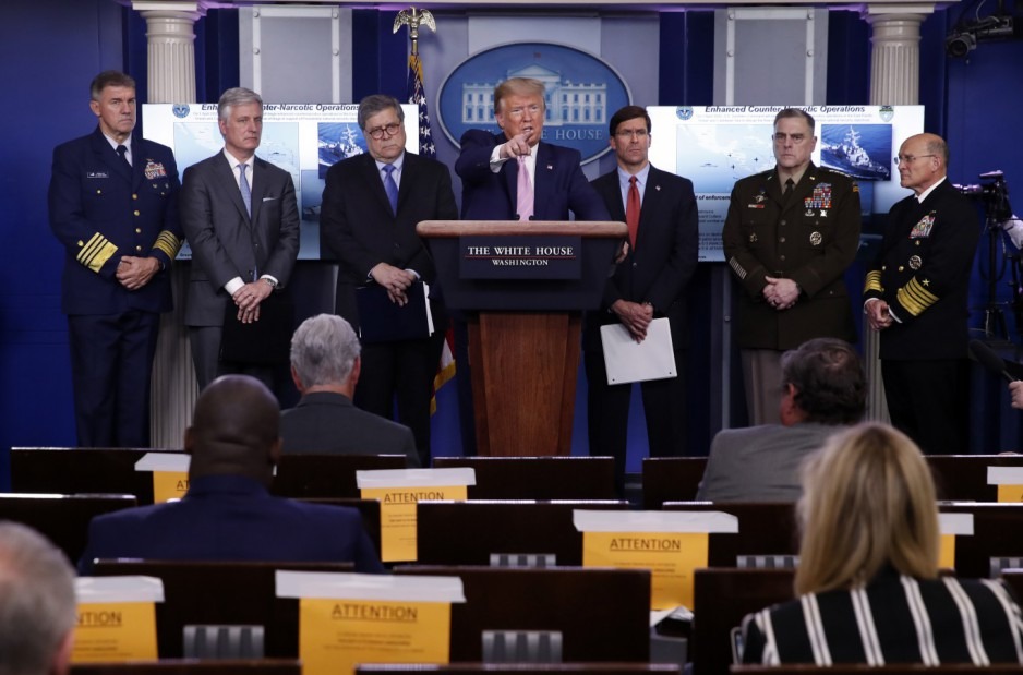 «El Comando Sur de los Estados Unidos aumentará la vigilancia, las incautaciones, el despliegue de aeronaves, naves y helicópteros destructivos», explicó desde la Casa Blanca el presidente estadounidense en conferencia de prensa, acompañado del fiscal general William Barr y el jefe del Pentágono, Mark Esper.